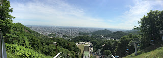 森林浴を楽しんでいた最中、突如として現れる人工物群。ここが大倉山。スキージャンプ場です。間近に見下ろす札幌の街並み。